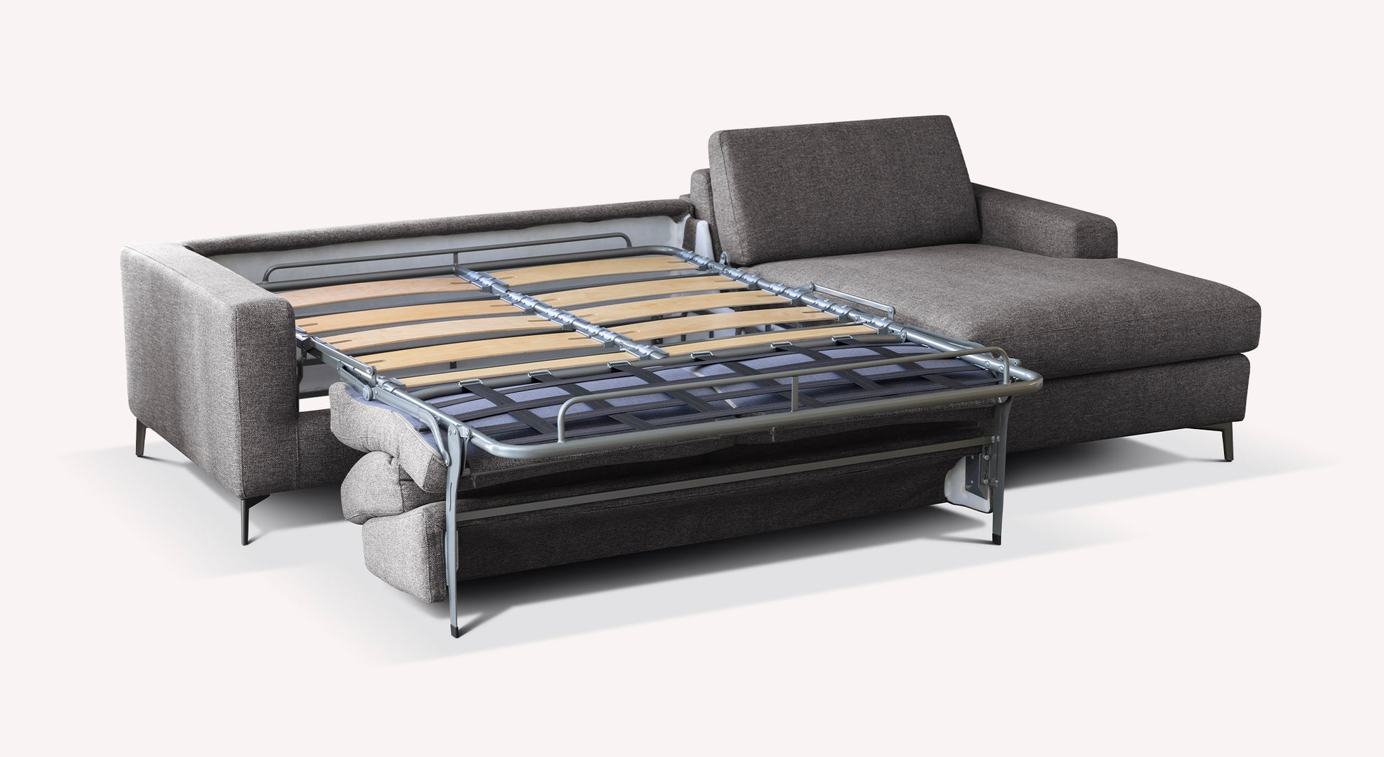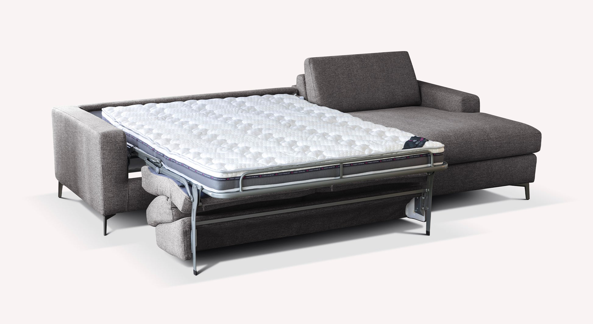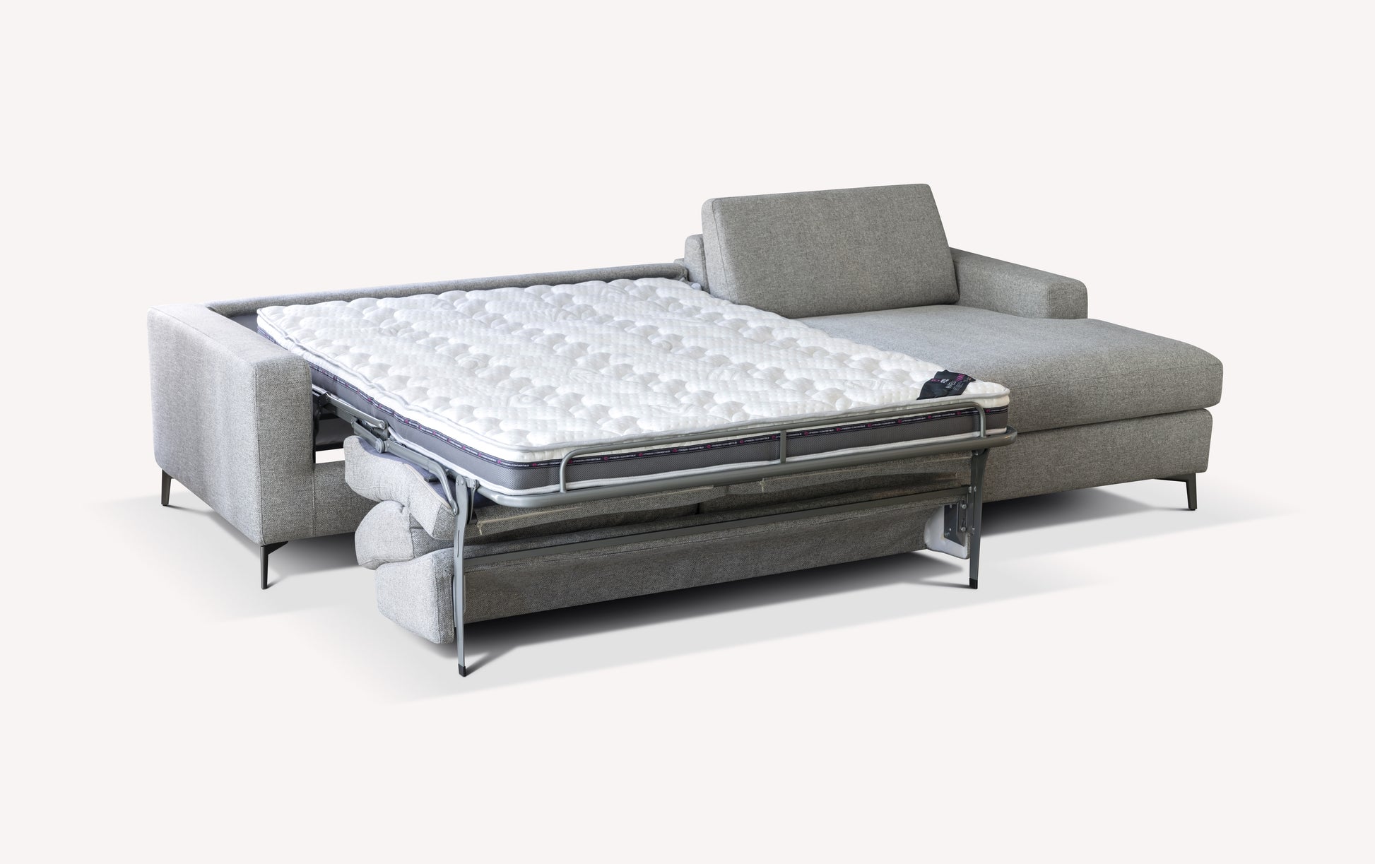 Nighttime comfort: confirmed by our designers and specialists, the mattress of this convertible sofa bed guarantees maximum comfort for sleeping night after night. The LISBONA corner sofa invites you to sleep daily on its base with large beech wood slats (optional), to benefit from flawless sleep.