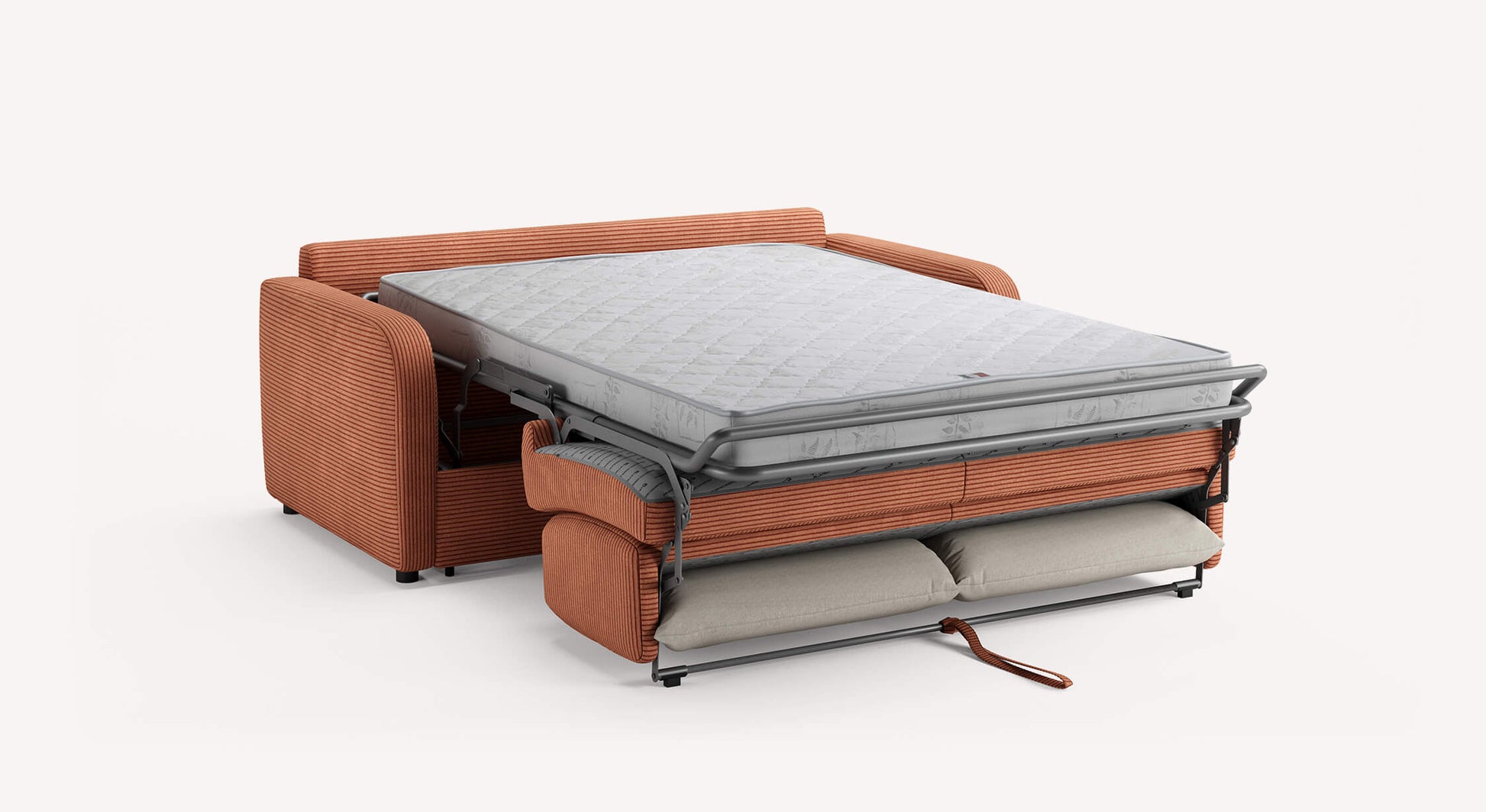 Let yourself be tempted by our CLINT model, a small, trendy sofa bed with elegant lines and a soft, comfortable seat.