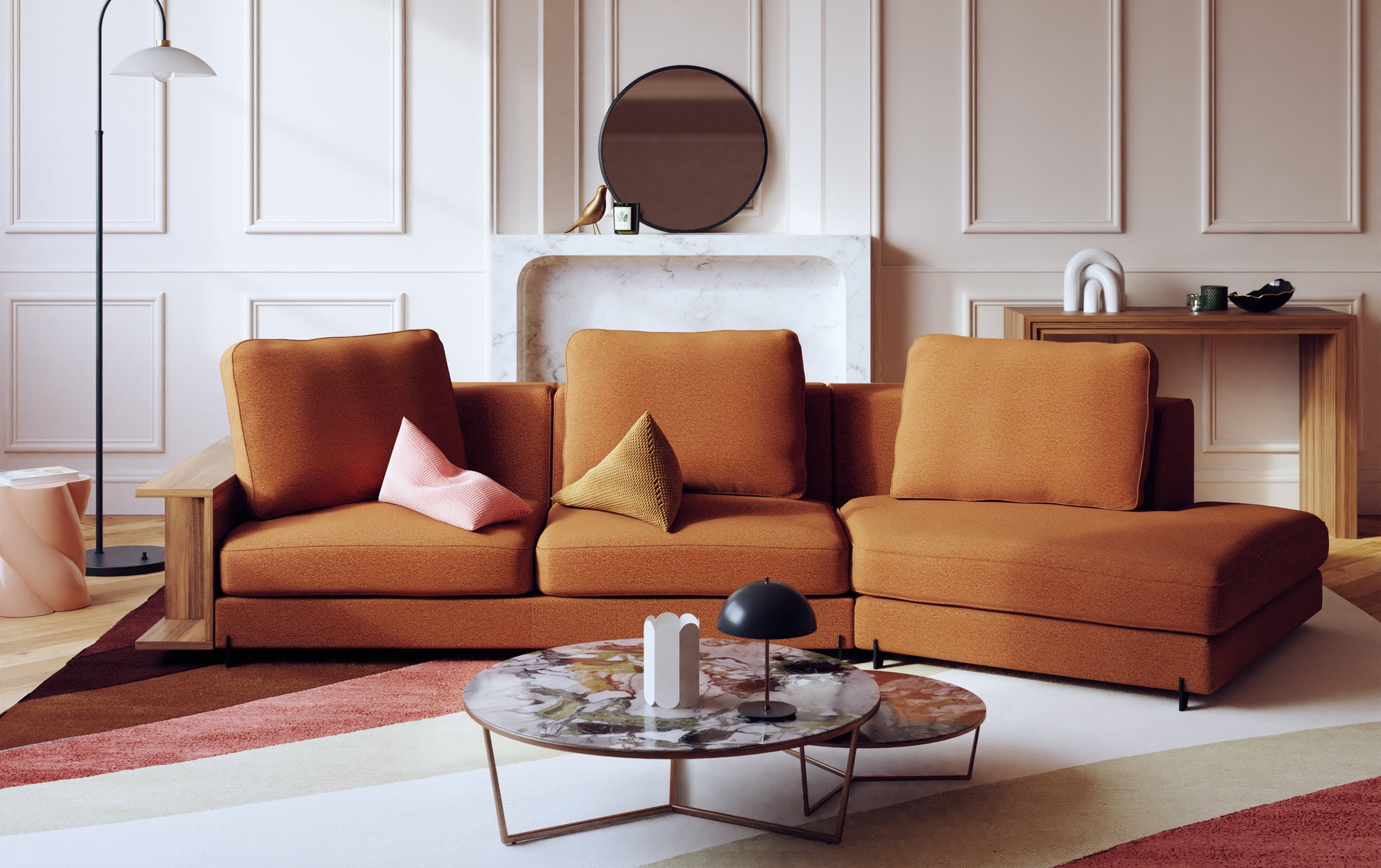 The NELLY model is the first convertible & modular sofa. Here, fall for its broken corner version, an original and space-saving corner sofa. To compose and modulate endlessly around multiple modules!