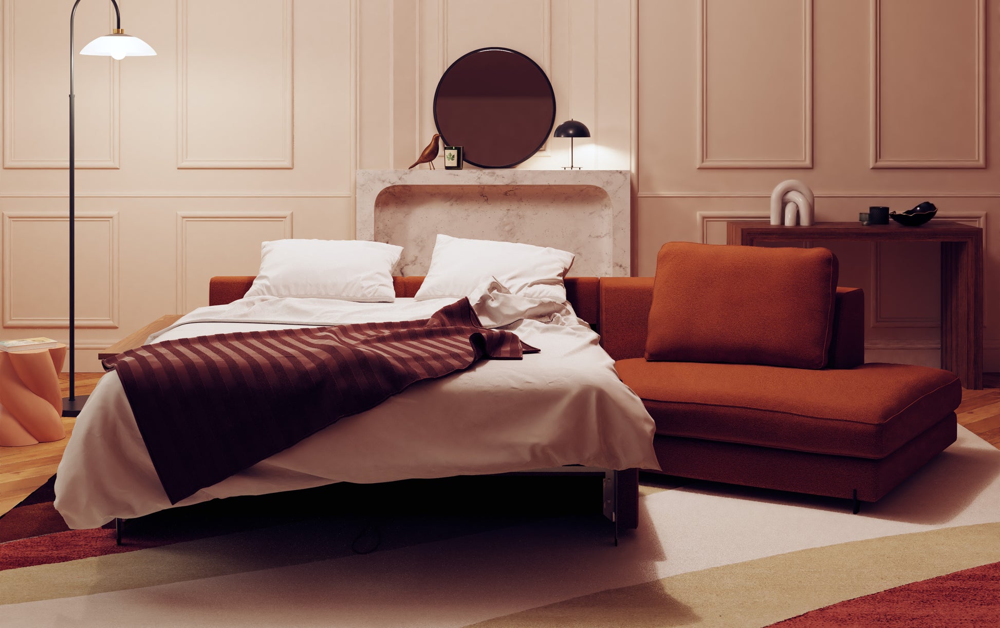 In a few seconds, thanks to the rapido system, it transforms into a real bed composed of a 13 cm thick mattress and a slatted or grid base depending on your preferences. Able to serve as both a comfortable sofa and a bed, it is the ideal multi-use sofa. Our in-store advisors will be delighted to present to you all the possible configurations as well as all the mattresses that will best suit your comfort.