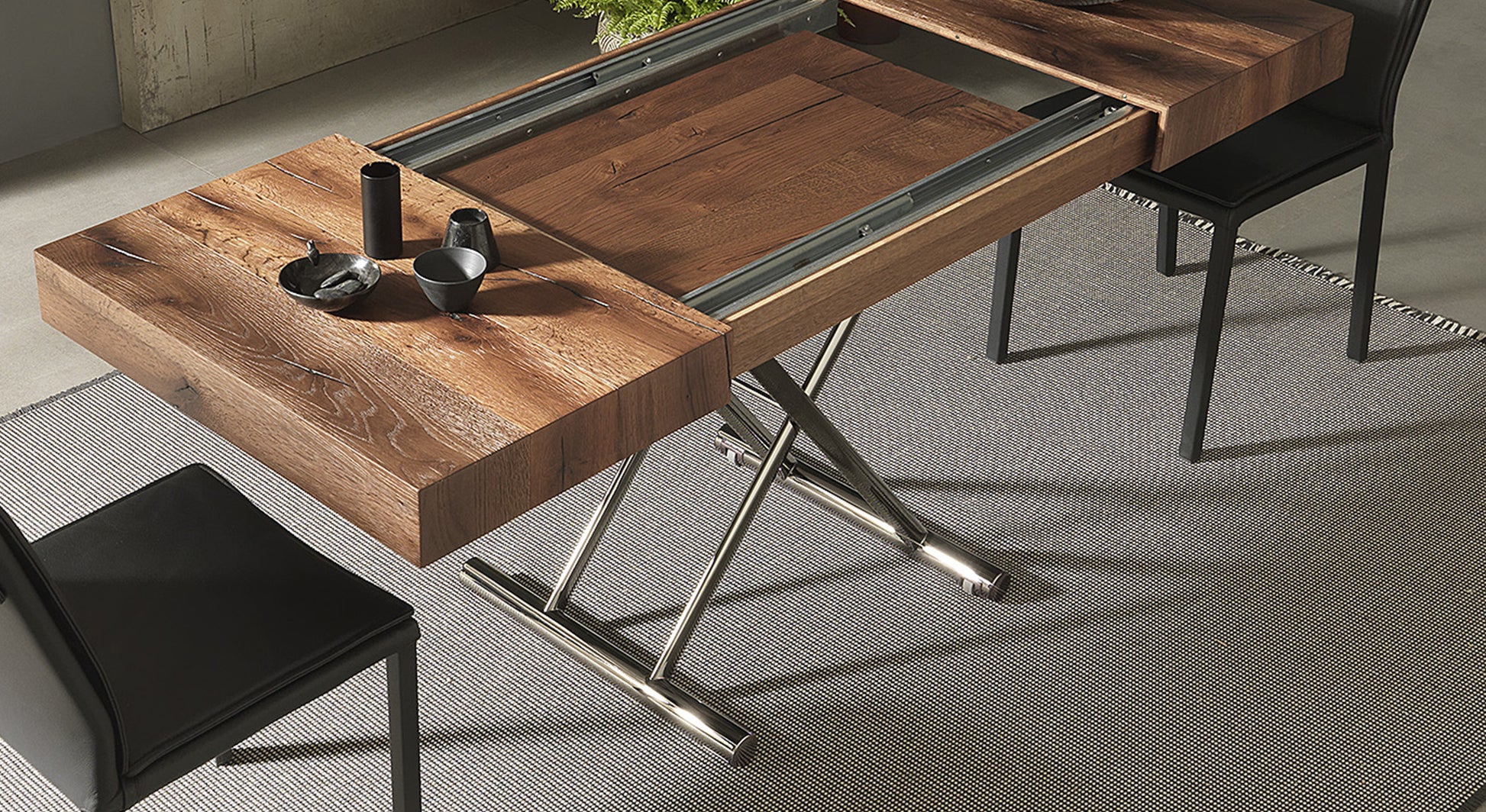 En version haute, grande, basse ou même petite, la table relevable et extensible CALYPSO ne déçoit jamais. Réglable également en hauteur, cette table est un précieux complément pour des espaces à vivre avec style.