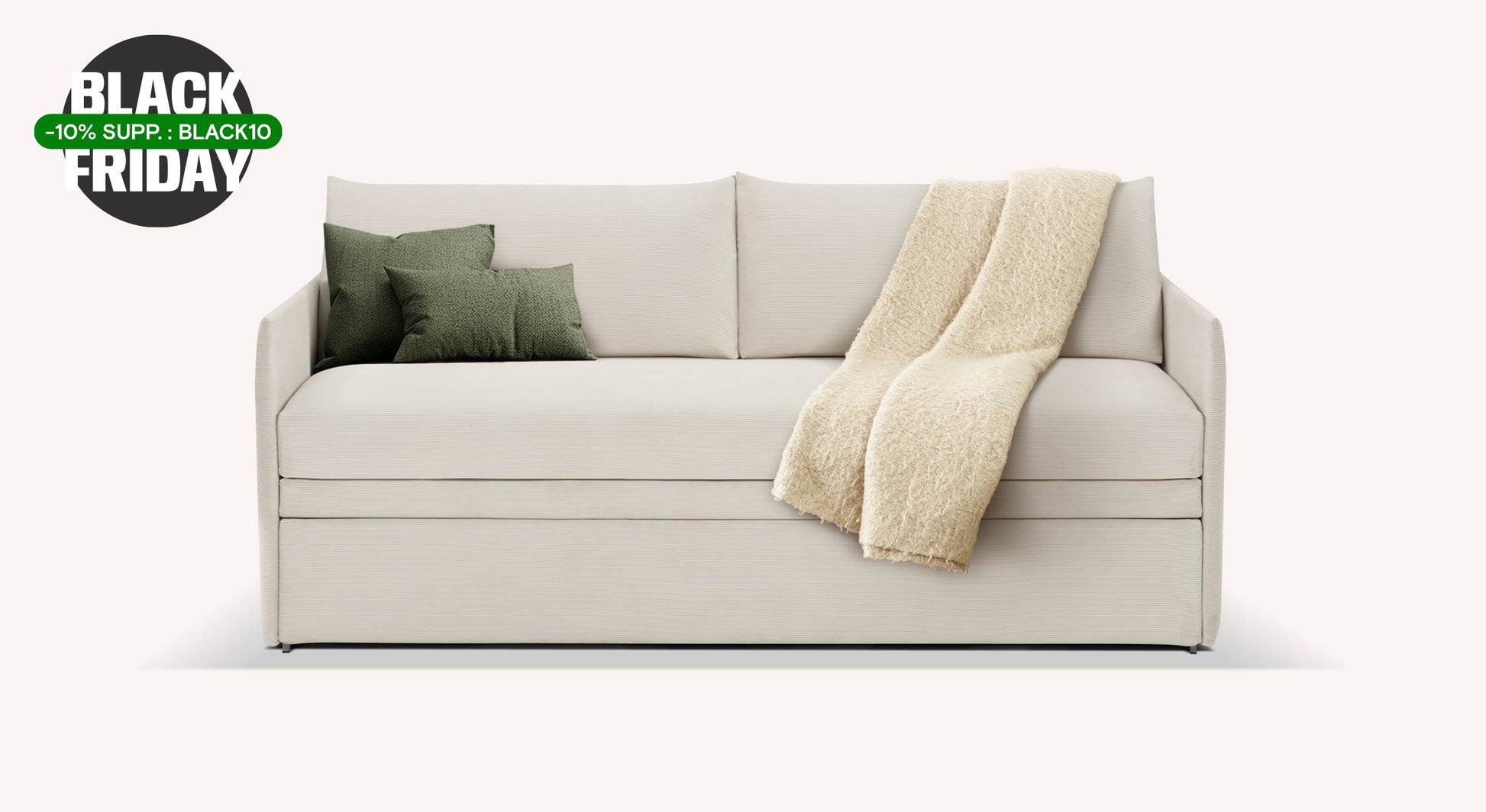 Profitez d'un meuble 2 en 1 avec le canapé-lit gigogne GAIA, connu pour son confort d'assise et son couchage supplémentaire discret et pratique pour accueillir vos proches en toute simplicité. De plus, il s'adapte convenablement à votre espace de vie grâce à son design ingénieux.
