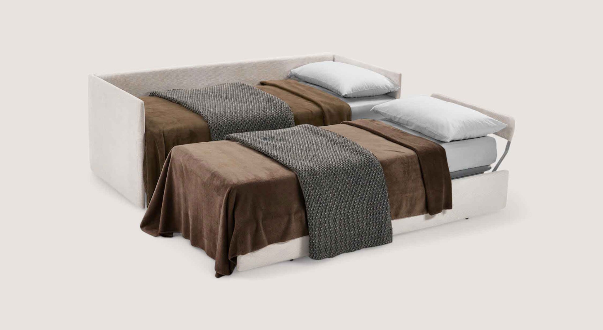 Le canapé-lit gigogne Gaia séduit le public par sa capacité à combiner élégance et praticité. Polyvalent, son design soigné et sa structure en bois aggloméré apportent une touche de charme à votre intérieur; ce qui s'intègre facilement à tout type de décoration. Disponible dans plus de 500 tissus, le GAIA se personnalise selon vos goûts, vous permettant ainsi de trouver le modèle idéal.
