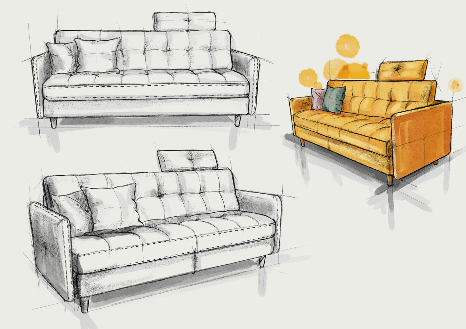 J'ai conçu ce modèle conjuguant la légèreté et le peps d’un design rétro avec un cœur scandinave. Le style du SOHO réveille votre intérieur par les couleurs en vogue de son revêtement rappelant la fibre du tweed ! Ce modèle design vous séduira par ses piétements en bois et ses coussins capitonnés.